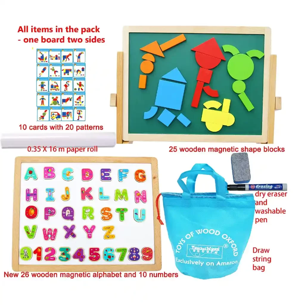 Por otro lado, para los más artísticos existe el de la marca TOWO. Vienen incluidas un total 2 pizarras, una blanca y otra negra, con multitud de piezas magnéticas.