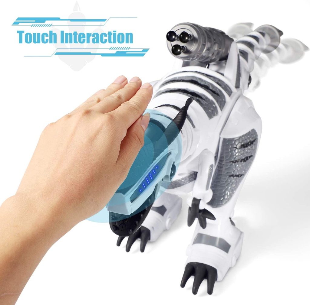 El aspecto más original de este dinosaurio es la inclusión de una detección táctil inteligente que permite al robot realizar algunas acciones como mover la cola o la cabeza. Además, cabe resaltar el creativo diseño que tiene este dinosaurio.